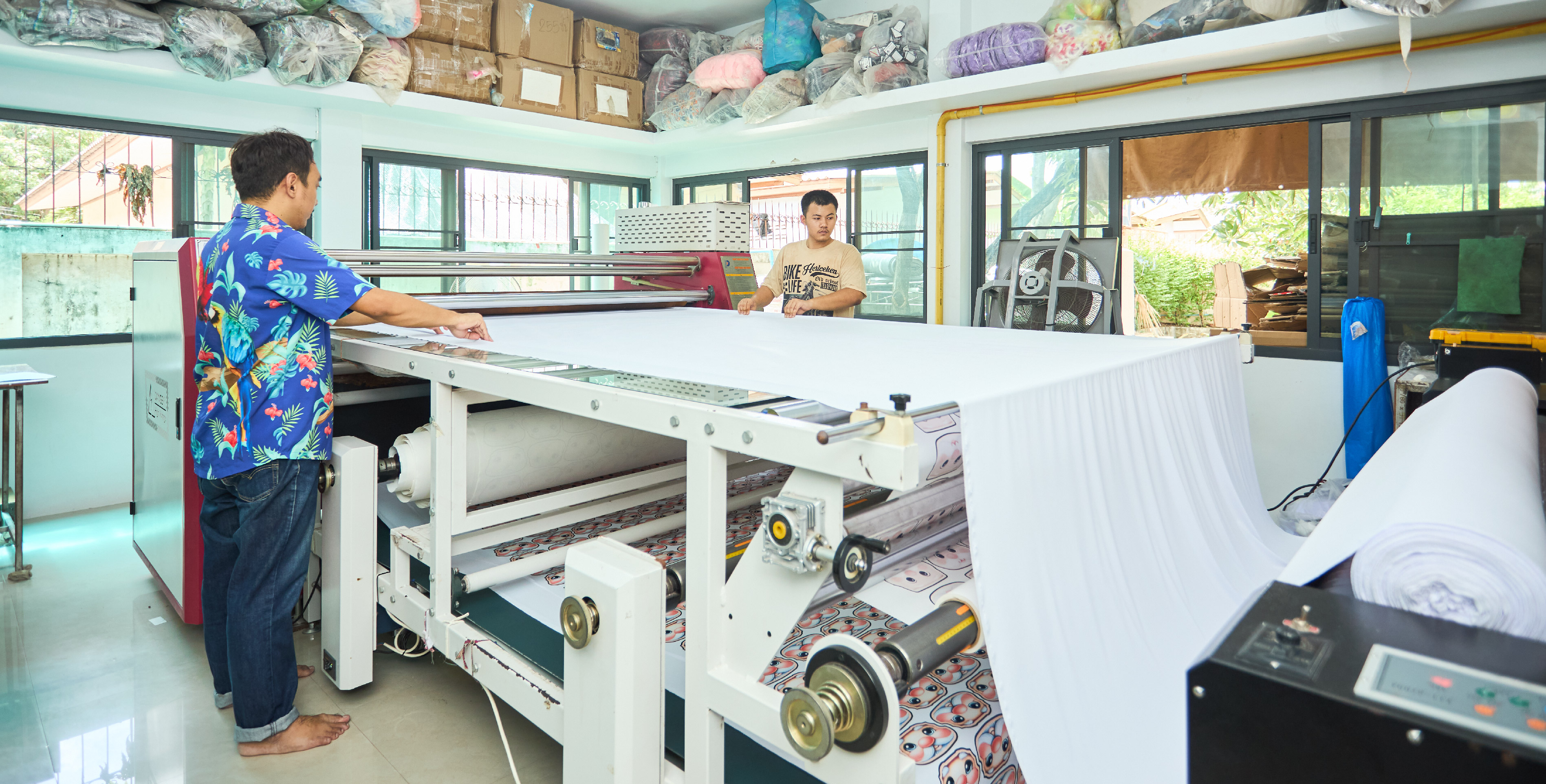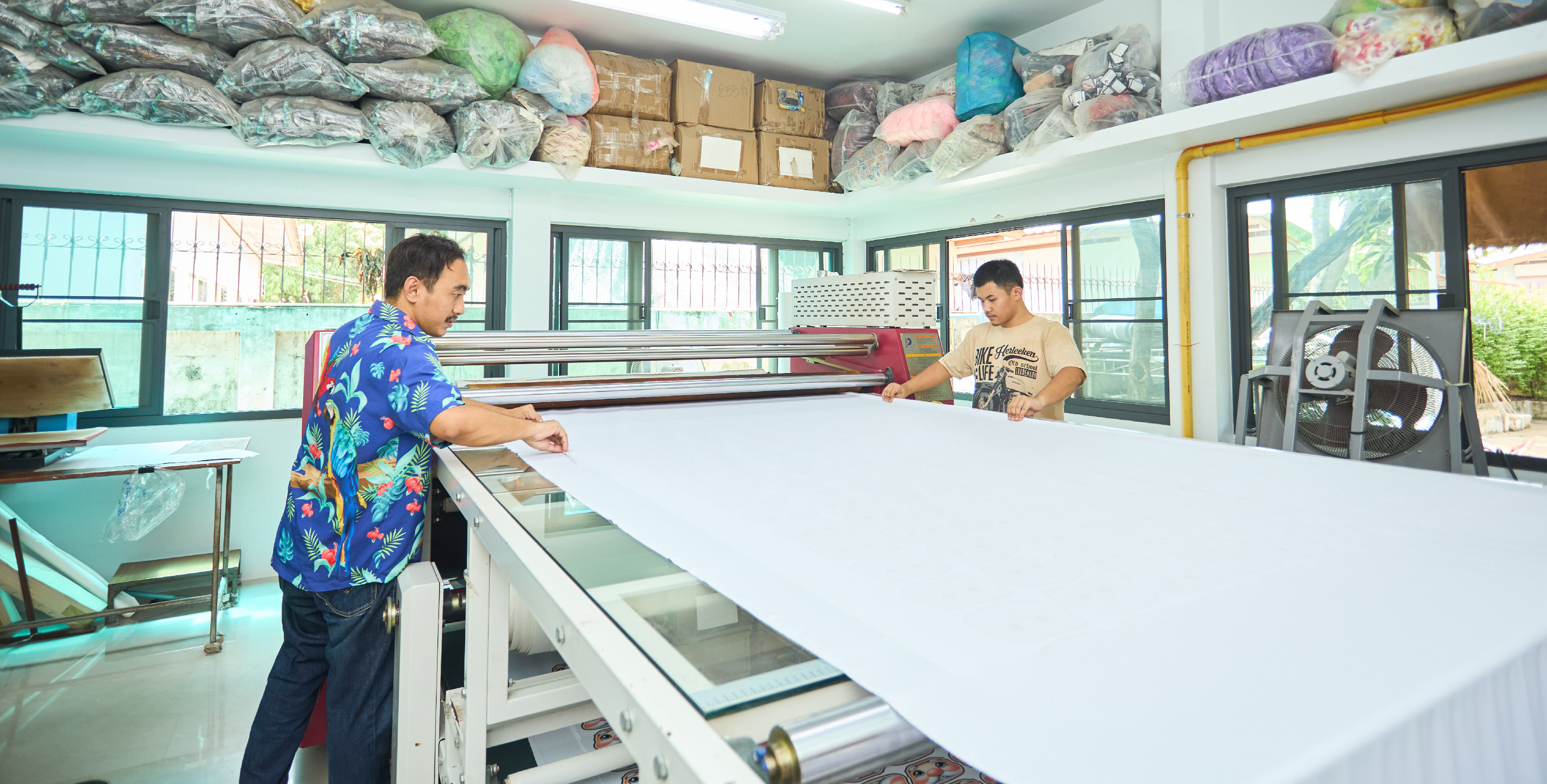 โรงงานของเรามีความพร้อมด้านงานพิมพ์และรีดลาย ด้วย เครื่องพิมพ์ระบบซับลิเมชั่นจาก EPSON ที่ให้สีสันสดคมชัด ติดทนนาน ไม่หลุดลอก และ เครื่องรีดร้อนอุตสาหกรรมจาก PENGDA ที่ให้แรงกดสม่ำเสมอ รีดลายแน่นไม่หลุดลอกแม้ซักบ่อย เรารับผลิตงานพิมพ์บนผ้าทุกชนิด ทั้งเสื้อเด็ก เสื้อผู้ใหญ่ ยูนิฟอร์ม และแฟชั่น พร้อมควบคุมคุณภาพทุกขั้นตอน เพื่อให้งานของคุณออกมาสวยตรงแบบทุกครั้ง เรารับผลิตตั้งแต่จำนวนน้อย (Made to order) ไปจนถึงงานล็อตใหญ่ (OEM/ODM)